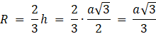 Bok trójkąta wynosi a. Promienie okręgów odpowiednio wpisanego i opisanego oznacz jako r i R. Wiesz, że: