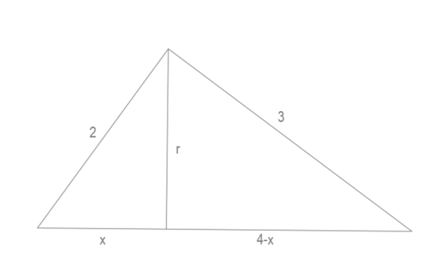 Dany jest trójkąt o bokach 2, 3 4. Znajdź objętość bryły powstałej w wyniku obrotu tego trójkąta dookoła najdłuższego boku.