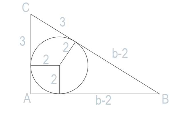 Dany jest trójkąt prostokątny, został opisany na okręgu o długości promienia równej 2. Znajdź obwód tego trójkąta, jeśli jedna z przyprostokątnych ma długość 5.