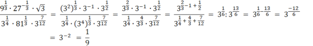 Należy zapisać wszystkie liczby jako potęgę liczby 3, a następnie skorzystać ze wzorów: