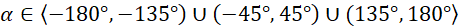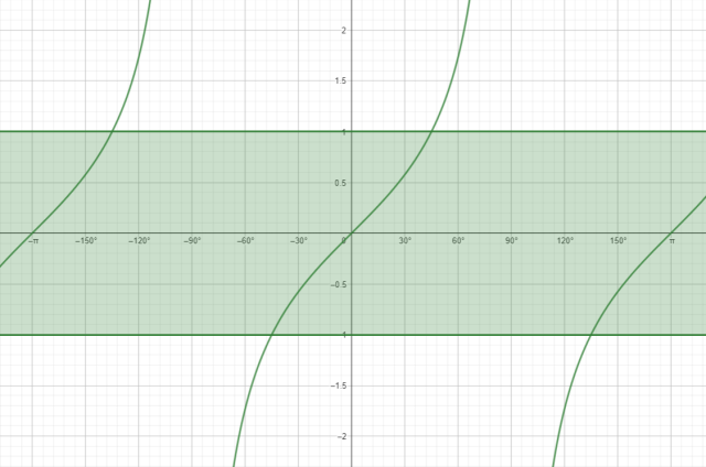 W tym zadaniu musisz powiedzieć, dla których kątów większych lub równych –180°, ale mniejszych lub równych 180° prawdziwa jest nierówność tg2 α < 1.