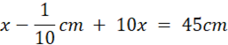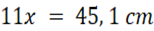 Należy teraz ułożyć równanie, wiemy, że nitka złożona w pół i igła mają razem 45cm, należy pamiętać ze wliczając długość igły uwzględnić jej uszko. Otrzymujemy: