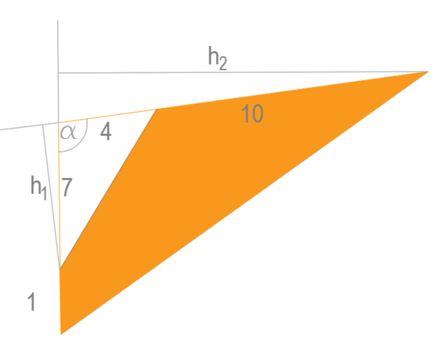 Pole części zamalowanej jest równe różnicy obu pól trójkątów: