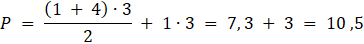 Zauważ, że figura składa się z prostokąta i trapezu.