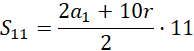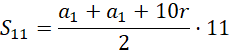 W pierwszym kroku przekształć a6 i a11 według wzoru an = a1 + (n – 1) · r. Zapisz wzór na sumę 11 wyrazów, zamieniając a11 na a11 = a1 + 10r. Zauważ w tym momencie, że a1 + a11 = 2a6, które równa się 0.