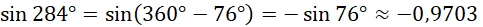 W tym zadaniu musisz policzyć, ile wynoszą sin 284°, sin 329°, sin 352°.