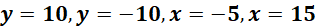 Styczne do okręgu do proste mające dokładnie jeden punkt wspólny z danym okręgiem. Mają być równoległe do osi układu współrzędnych, więc ich równania będą miały postać x = a lub y = a.
