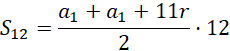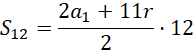W pierwszym kroku przekształć a3 i a10 według wzoru an = a1 + (n – 1) · r. Zapisz wzór na sumę 12 wyrazów, zamieniając a12 na a12 = a1 + 11r. Zauważ w tym momencie, że a1 + a12 = a3 + a10, które równa się 3.