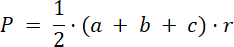 Obliczam promień okręgu wpisanego w ten trójkąt: