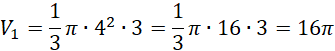 Skorzystaj z twierdzenia Pitagorasa, aby wyznaczyć potrzebne wartości. Oblicz objętość mniejszego stożka, a następnie za pomocą skali oblicz objętość większej bryły.