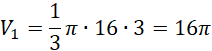 Skorzystaj z twierdzenia Pitagorasa, aby wyznaczyć potrzebne wartości. Oblicz objętość mniejszego stożka, a następnie za pomocą skali oblicz objętość większej bryły.