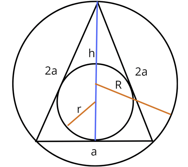 W tym zadaniu musisz obliczyć długość podstawy trójkąta równoramiennego, wiedząc, że ramię jest dwa razy dłuższe od podstawy, a suma promienia okręgu wpisanego w ten trójkąt i promienia okręgu opisanego na tym trójkącie jest równa