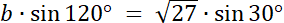 Skorzystaj z sumy kątów w trójkącie oraz z twierdzenia sinusów, aby wyznaczyć brakujące wartości liczbowe boków i kąta w trójkącie.