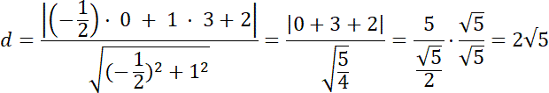 Mając współrzędne punktu A(0, 3), należącego do pierwszej prostej możemy wyznaczyć jego odległość od drugiej prostej, jednak najpierw musimy przekształcić ją do postaci ogólnej.
