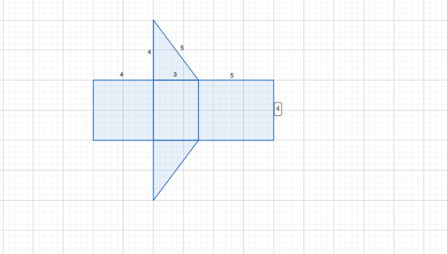 4 cm x 4 cm oraz 5 cm x 4 cm. Będą 3 ściany boczne, ponieważ trójkąt ma 3 krawędzie.