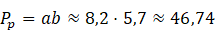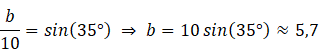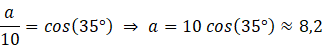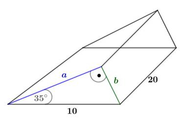 Z zależności trygonometrycznych w trójkącie prostokątnym, będącym podstawą, wyznacz długości boków jego przyprostokątnych (a, b). Następnie oblicz pole podstawy (Pp), objętość (V) oraz pole całkowite (Pc) graniastosłupa.
