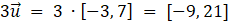 By AB = 3u, punkt B musi być przesunięty o wektor 3u w stosunku do punktu A. Aby obliczyć współrzędne wektora 3u, pomóż obie współrzędne wektora u razy 3. Następnie do współrzędnych punktu A dodaj otrzymane współrzędne wektora 3u.