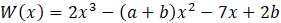 Wielomian P(x) możesz przekształcić do postaci iloczynowej, w której jest on iloczynem dwóch dwumianów: x + 2 i x – 1. Aby wielomian W(x) był podzielny przez P(x), musi być on podzielny przez x + 2 oraz x – 1. Znaczy to, na mocy twierdzenia Bezouta, że W(-2) = 0, i W(1) = 0. Podstaw wartości x = -2 oraz x = 1 do wzoru wielomianu w postaci ogólnej, a następnie przyrównaj otrzymane wyrażenia do 0. Otrzymasz w ten sposób dwa równania, z których utwórz układ pozwalający na wyznaczenie wartości a i b.