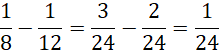 W tym zadaniu musisz sprowadzić podane ułamki do ich najmniejszego wspólnego mianownika, a następnie obliczyć różnicę: