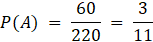 Zbiór wszystkich zdarzeń elementarnych tego doświadczenia składa się z 220 elementów – wyciągasz 3 z 12 kul. Zdarzeń elementarnych sprzyjających zdarzeniu A jest 60 – losujemy po 1 spośród 3, 4 i 5 kul. Otrzymasz więc