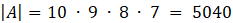 Pierwsza osoba może wysiąść na 10 sposobów, druga na 9, trzecia na 8, a czwarta na 7. Ponadto