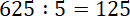 Następnie, aby sprawdzić, ile razy należy dodać 5, żeby otrzymać 625, wykonaj dzielenie.