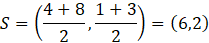 Stwórz układ równań, z którego wyznacz punkty przecięcia prostej z parabolą. Następnie znajdź środek odcinka AB i oblicz odległość d między wierzchołkiem tej paraboli, a wyznaczonym środkiem S.