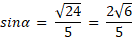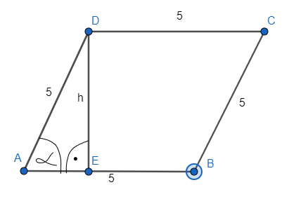 Wyznacz wysokość i pole rombu, którego bok ma długość 5 cm, a miara kąta ostrego α jest taka, że