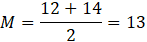 Uporządkuj liczby rosnąco. Mediana tego zestawu to 14. Należy wykreślić 14. Wtedy mediana będzie równa 13.