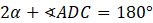 oraz, że kąty przy podstawie w trójkątach równoramiennych są równe.