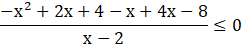 Określamy dziedzinę wyrażenia, wiedząc, że mianownik ma być niezerowy. Przerzucamy wszystkie wyrazy na jedną stronę nierówności i wprowadzamy na wspólną kreskę ułamkową. Dla dowolnych liczb rzeczywistych znak ilorazu jest taki sam jak znak iloczynu, więc rozpatrujemy wielomian będący iloczynem licznika i mianownika. Obliczamy jego miejsca zerowe i rozwiązujemy nierówność dla funkcji homograficznej.
