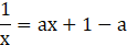 Wstawiamy punkt (1, 1) do wzoru funkcji liniowej. Wraz z równaniem hiperboli, mamy układ dwóch równań o dwóch niewiadomych. Rozwiązujemy go, pamiętając, że punkt wspólny będzie tylko jeden, więc