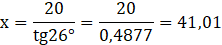 Wyznaczamy wartości funkcji trygonometrycznych, aby zawrzeć w tym stosunku szukaną długość. Wyznaczamy wysokość odczytując wartości z tablic i obliczamy.