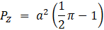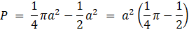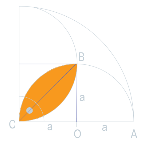 Odcinek BC dzieli zacieniowaną figurę na dwie równe części. Pole zacieniowanej części jest równe różnicy pół wycinka COB o promieniu i trójkąta COB o przyprostokątnych a.