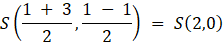 Punkt będący środkiem symetrii punktów A i C (oraz czworokąta ABCD) to środek odcinka AC. Jest współrzędne to:
