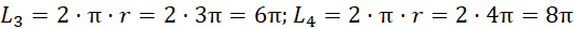 Oblicz osobno długość każdego z trzech okręgów. Następnie sprawdź, czy suma długości dwóch mniejszych jest równa długości największego okręgu.