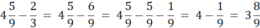 Rozszerz ułamki do mianownika 9 i wykonaj odejmowanie.