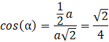 Oblicz długość wysokości ściany bocznej oraz odcinka łączącego spodek wysokości ściany bocznej oraz spodek wysokości bryły. Oba te odcinki to kolejno przeciwprostokątna oraz przyprostokątna przyległa do poszukiwanej miary kąta trójkąta prostokątnego. Wykorzystaj cosinus kąta, by uzależnić miarę kąta od długości krawędzi w ostrosłupie. Oblicz przybliżoną wartość funkcji odwrotnej do cosinusa. Skorzystaj z tablic wartości funkcji trygonometrycznych lub kalkulatora.