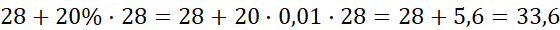 W tym zadaniu dokonaj obliczenia: 28 zwiększ o 20% tej liczby.