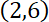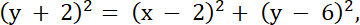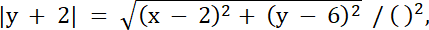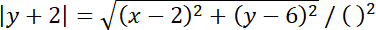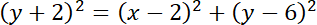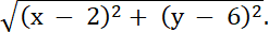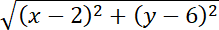 oraz odległość punktu P(x, y) od punktu (2, 6):
