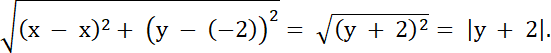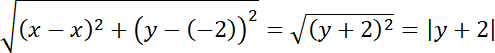 Rozważ odległość punktu P(x, y) od prostej y = -2