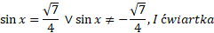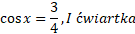 Skorzystaj ze wzoru na cosinus podwojonego kąta i z jedynki trygonometrycznej. Przypomnij sobie, że zarówno sinus, jak i cosinus w pierwszej ćwiartce są dodatnie.