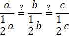 Trójkąty są podobne z cechy BBB– stosunek długości odpowiadających sobie boków w obu trójkątach jest taki sam.