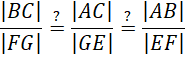 Udowodnij, że trójkąty ABC i EFG przedstawione na rysunku są podobne, jeśli w trójkącie ABC połączono odcinkami punkty będące środkami boków.