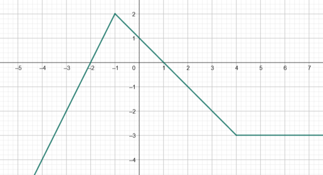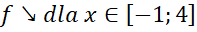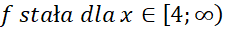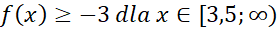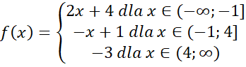 Narysuj podany wzór funkcji w każdym z przedziałów-. Następnie odczytaj z niego miejsca zerowe, przedziały monotoniczności oraz argumenty dla których wartości funkcji są większe lub równe 3.