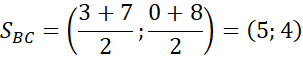 Oblicz współrzędne punktu przecięcia symetralnych boków trójkąta ABC. A(-5,4), B(3,0), C(7,8)