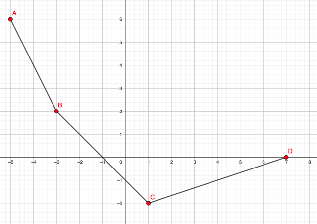 W tym zadaniu musisz narysować wykres funkcji oraz odczytać wartość dla argumentów -4, -2, 0, 4, jeżeli jej wykresem jest łamana ABCD o wierzchołkach w punktach: .