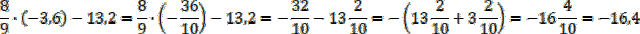 Pamiętaj o kolejności wykonywania działań: najpierw mnożenie, a po nim odejmowanie. Zapisz czynniki jako ułamki zwykłe. Następnie dodaj do siebie wartości bezwzględne wyniku mnożenia i pozostałej liczby, a przed otrzymaną sumę wstaw znak minus.