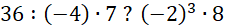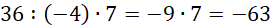 Oblicz osobno wartości obu wyrażeń. Kiedy w mnożeniu lub dzieleniu występują liczby ujemne, należy policzyć ilość. Jeżeli jest ona nieparzysta – wynik będzie ujemny, a jeżeli jest parzysta – dodatni.