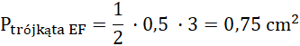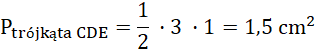 Nie możesz odczytać długości boków figury przedstawionej na rysunku, dlatego rysujesz wokół niej prostokąt. Obliczasz jego długości boków i liczysz jego pole. Następnie obliczasz pola trójkątów i pole trapezu, będące pomiędzy prostokątem a figurą. Aby obliczyć pole figury, musisz od pola prostokąta, odjąć pola dwóch trójkątów i trapezu. Pamiętaj, że jedna kratka to 0,5 cm.